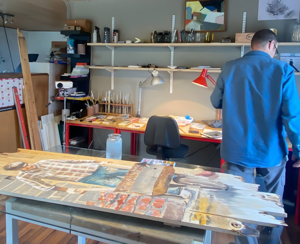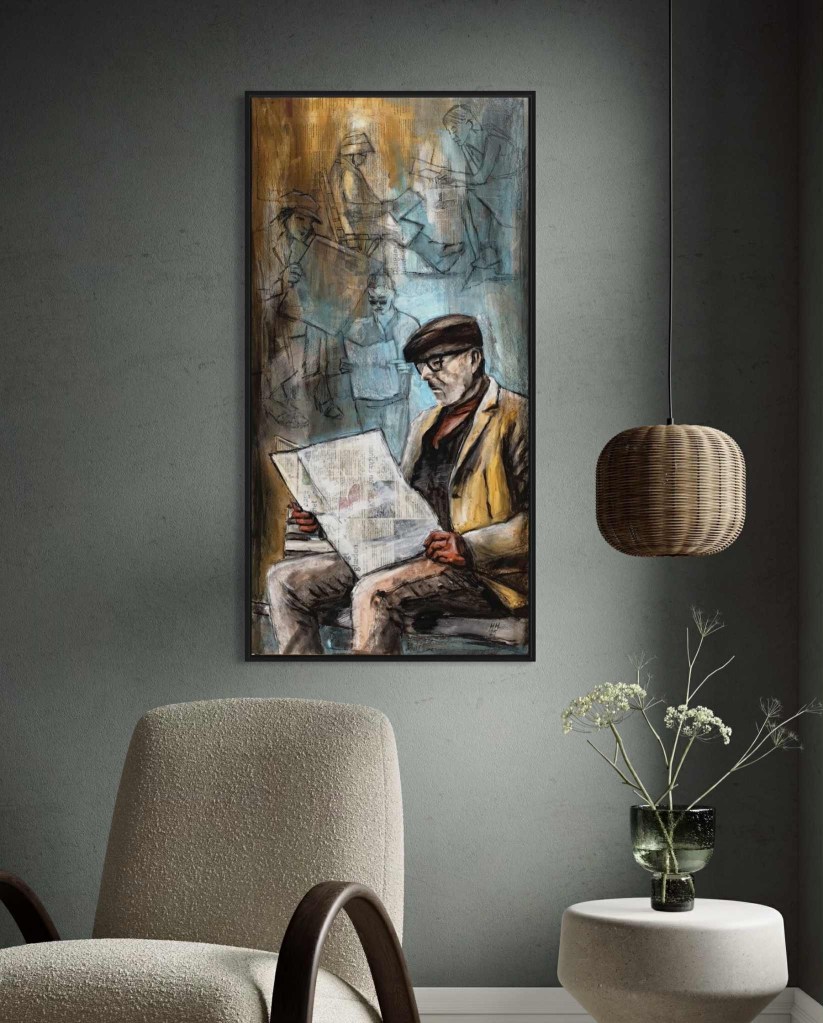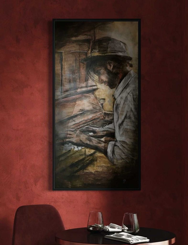 Jeg bruger akryl, trækul, pastel, blyant, spray osv.