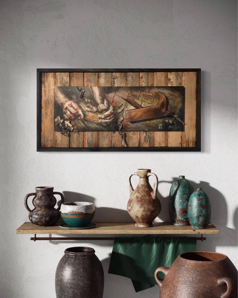 Idéen bag er at vise respekt for godt gammeldags håndværk, genbrug af materialer, at give nyt liv til gammelt værktøj og skabe et cool og rustikt design – men først og fremmest forsøger jeg at skabe smuk kunst med et hyggelig budskab.